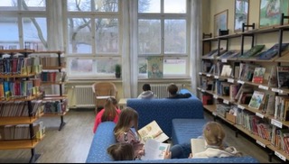 Die Bücherei ist an jedem Schultag geöffnet und wird auch sonst vielfältig genutzt…ob einfach zum gemütlichen Schmökern auf dem Sofa, Sitzkissen oder Sitzsack in der Pause, zum (Vor)Lesen mit der gesamten Klasse oder zur Leseförderung durch die Förderlehrkräfte und Lesepaten.