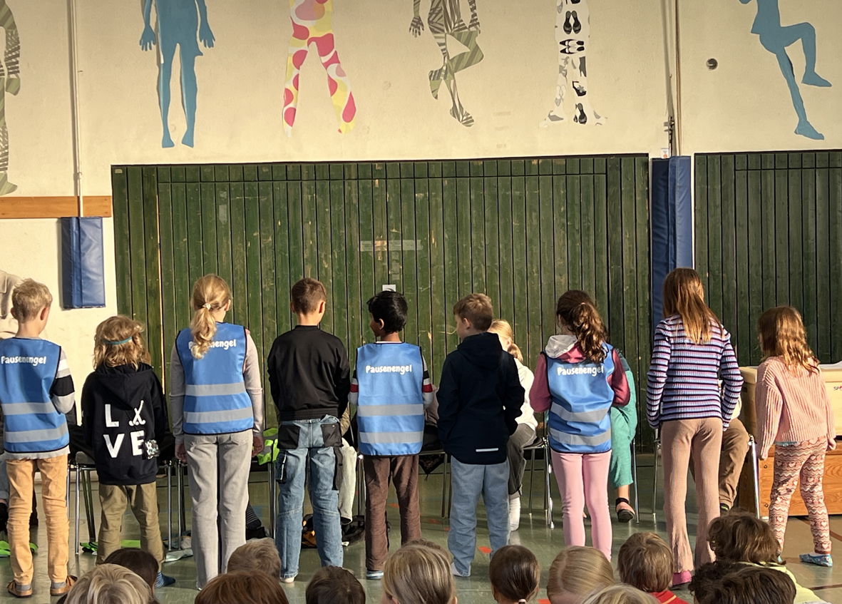 Außerdem lernten alle Kinder die neuen Spürnasen und Pausenengel kennen. Sie wurden speziell ausgebildet und helfen tatkräftig mit, die Toilettensituation an der Elly angenehmer zu gestalten und für weniger Streit und mehr Freude in den Pausen zu sorgen.