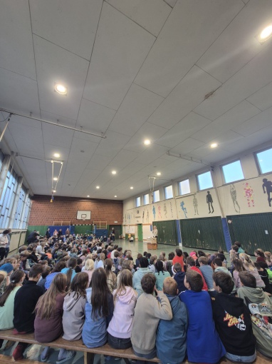 Heute hieß es für alle Schülerinnen und Schüler: Nachhaltigkeit erleben! Gemeinsam starteten wir in der Turnhalle, wo unser Projekttag eröffnet wurde.