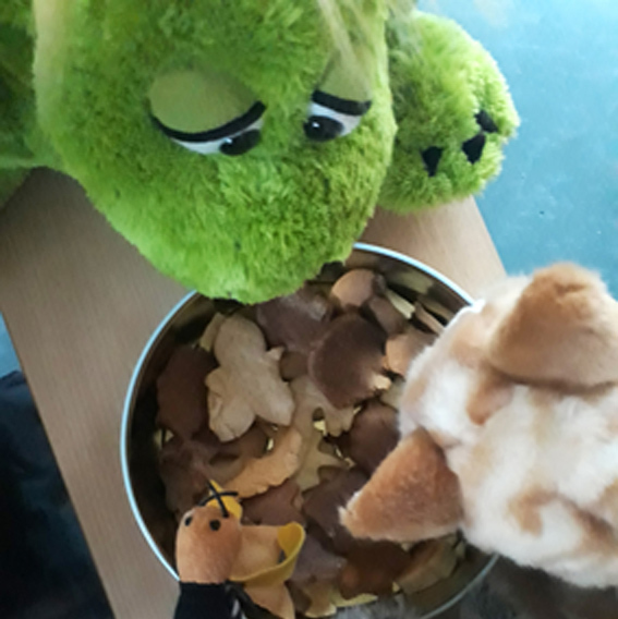 Auch der Vorlaufkurs war in der Weihnachtszeit fleißig und hat mit viel Begeisterung Plätzchen gebacken. Nach dem Backen ließen sich alle die Plätzchen gemeinsam mit einem wärmenden Fruchtpunsch schmecken. Sogar die Tiere Mimi, Drako, Euli und Glühwürmchen waren neugierig und wollten mitprobieren.